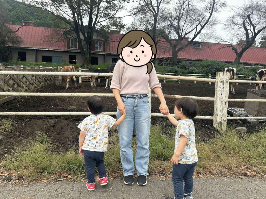 公園でたっぷり遊んだあとは、すぐ近くの「服部牧場」へ。