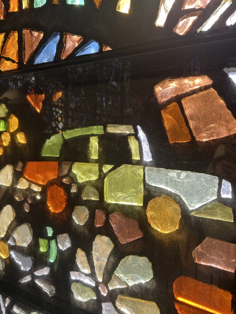 下から見上げるだけでも十分に楽しめるステンドグラスが印象的でした。